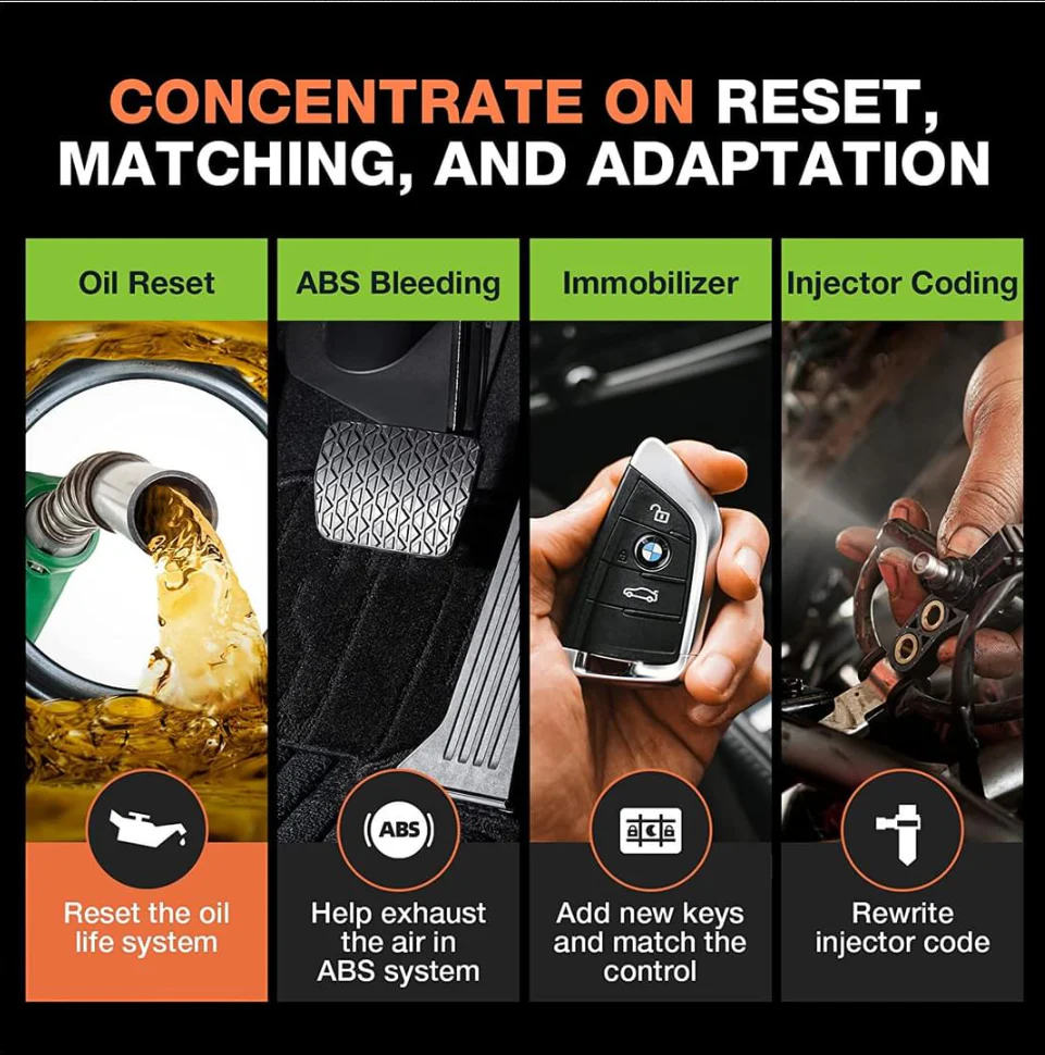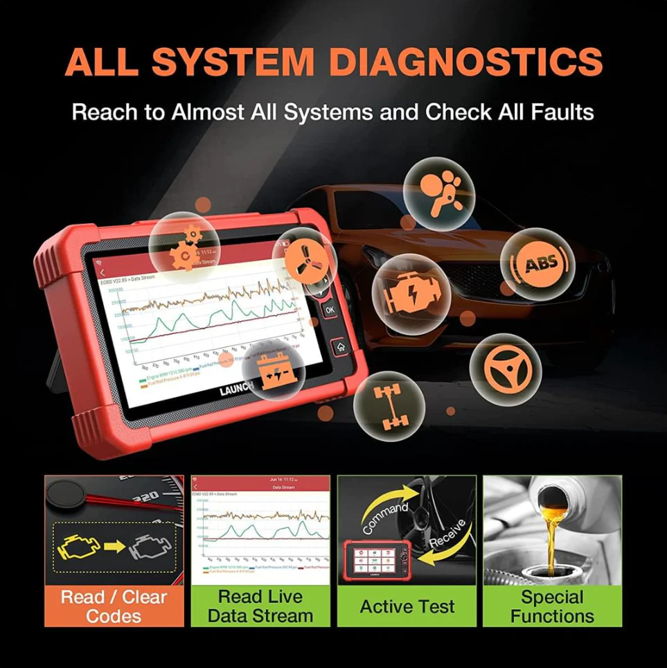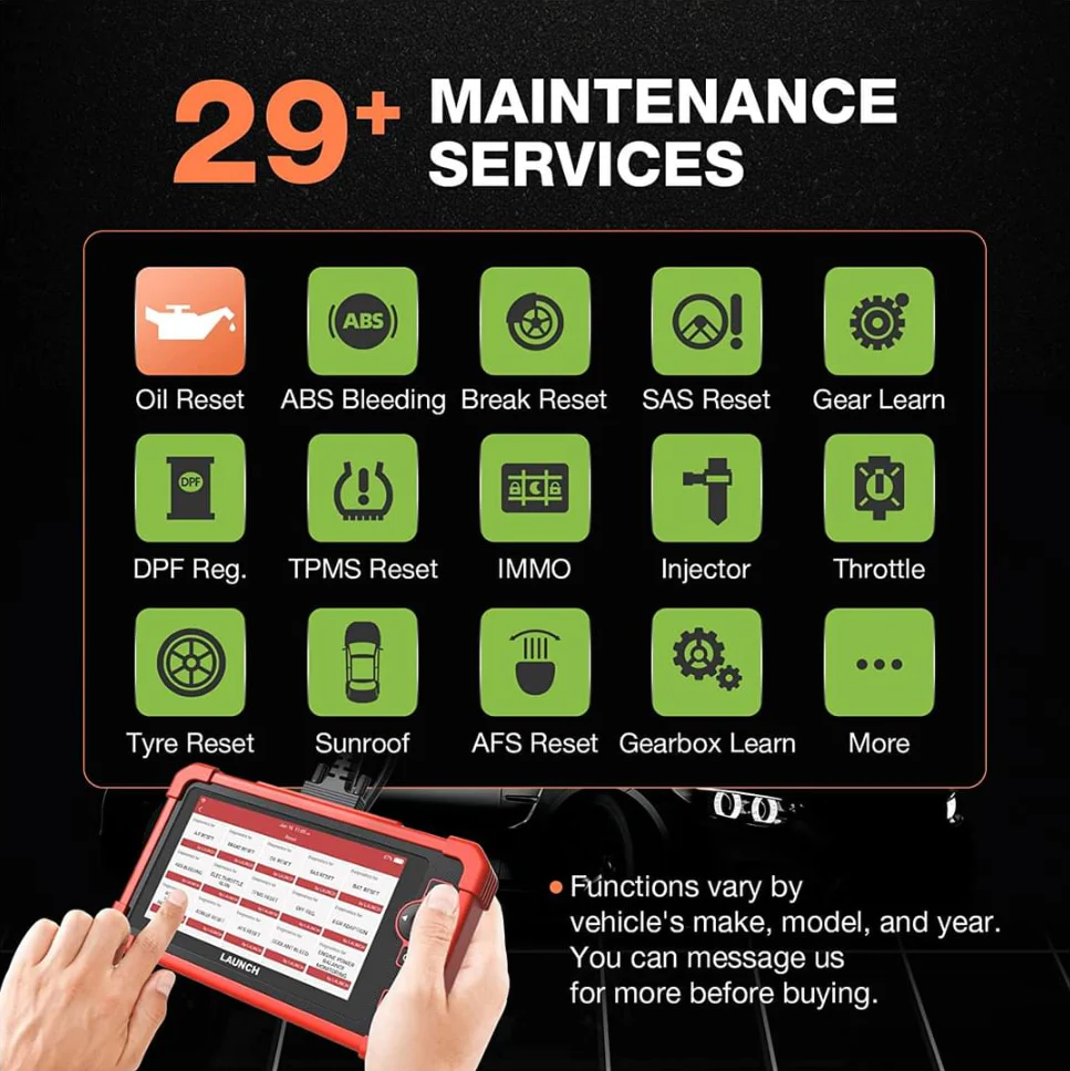 29+ usluga održavanja LAUNCH CRP919X s 29+ funkcija brze usluge, uključujući resetiranje ulja, IMMO ključeve, odzračivanje ABS-a, registraciju akumulatora, regeneraciju DPF-a itd., te još više ažuriranja koja dolaze za više funkcija. Nadograđeni dijagnostički skener CRP919X za 2025. kompatibilan je s više vozila.