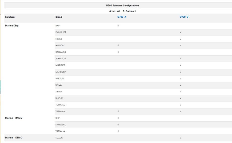 D700 A (Uglavnom za Jet ski), podržane marke kao što je navedeno u nastavku: