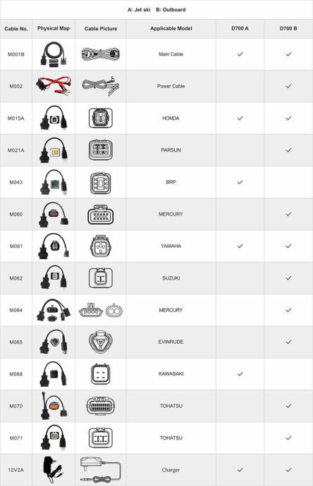 D700 A (Uglavnom za Jet ski), podržane marke kao što je navedeno u nastavku: