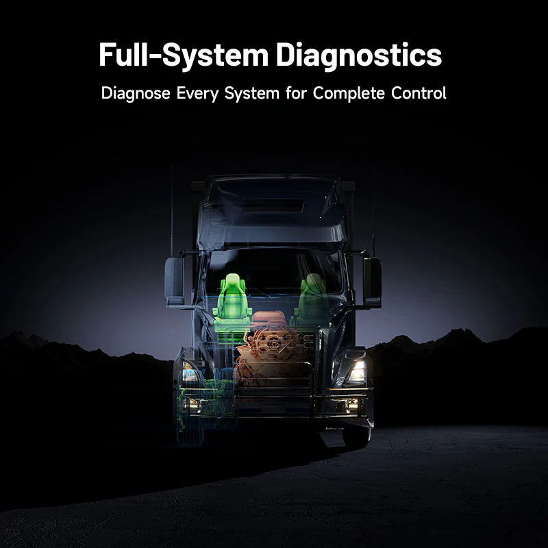 Dijagnosticira svaki sustav vozila, uključujući motor, mjenjač, ABS, klima uređaj, SCR, DPF i još mnogo toga, s informacijama iz ECU-a, čitanjem/brisanjem kodova i analizom podataka uživo.