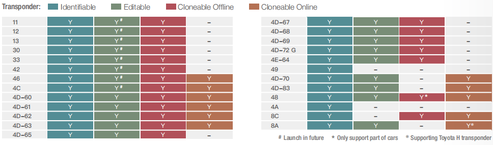 Podržava TP transponder i dijelove posebnih transpondera za više od 700 modela vozila, učinkovito smanjuje zalihe transpondera.